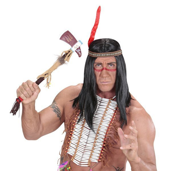 Opaska indiańska w kolorowe wzory z czerwonym piórkiem