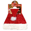 Produkt w kolorze czerwonym zdobiony białym futerkiem oraz pomponem.