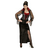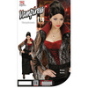 Strój pani Wampirzycy. Produkt w kolorach czerwono-czarnym. W zestawie sukienka z kołnierzem oraz ozdobnym długim czarnym rękawem z koronki.