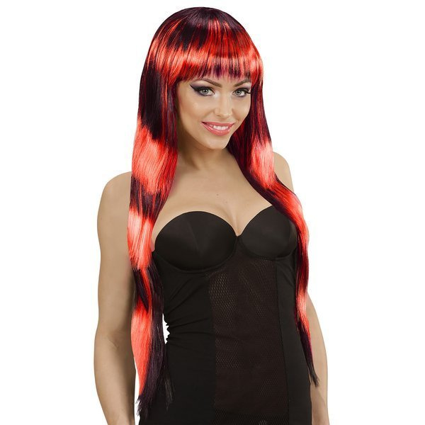 PERUKA DAMSKA Z GRZYWKĄ CZARNO-CZERWONA