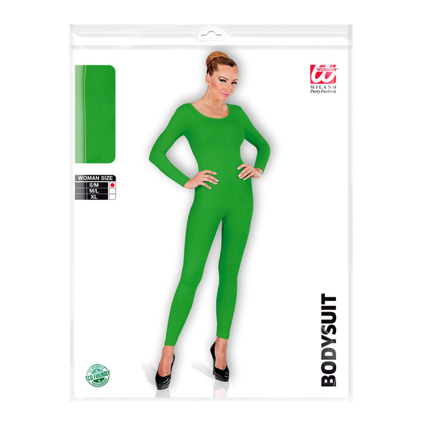 Kombinezon damski z długim rękawem. Wykonany z elastycznego materiału przylegającego do ciała. W kolorze zielonym.