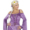 Włosy długie, zaplecione w warkocz w kolorze blond.