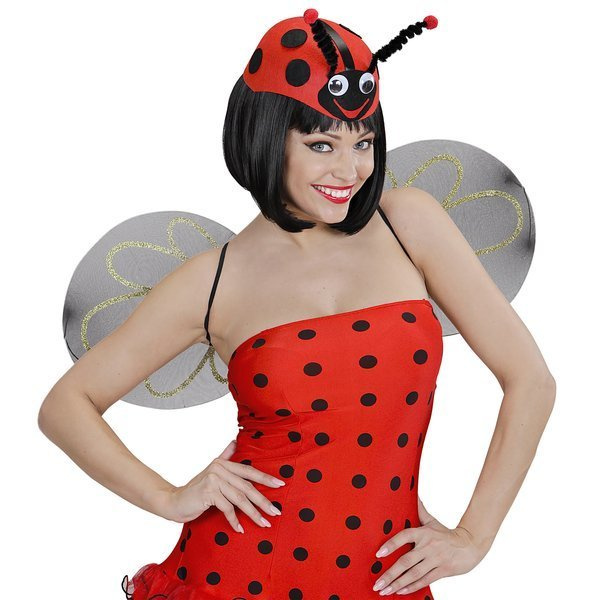 Przedstawia głowę biedronki z doczepionymi oczkami.