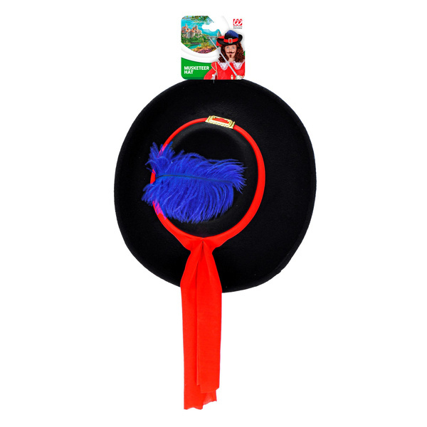 Ozdobiony czerwoną wstążką z klamerką oraz niebieskim piórkiem.