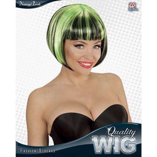 PERUKA DAMSKA BOB CZARNA PASEMKA ZIELONE