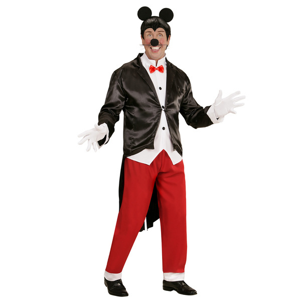 Strój Pan Mysz, Karnawał, kolor biało-czarno-czerwony, zestaw zawiera: frak z kamizelką, muszkę, spodnie i uszy.
