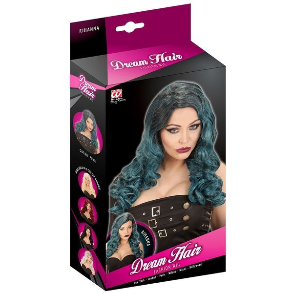 Peruka Ombre Zielono-Niebieska, Peruki, Akcesoria, kolor zielono-niebieski, włosy długie kręcone z przedziałkiem po środku, włosy bardzo dobrej jakości dzięki czemu wyglądają bardzi naturalnie, zapakowane w pudełko