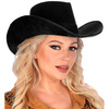 Kapelusz wykonany z materiału imitującego zamsz.