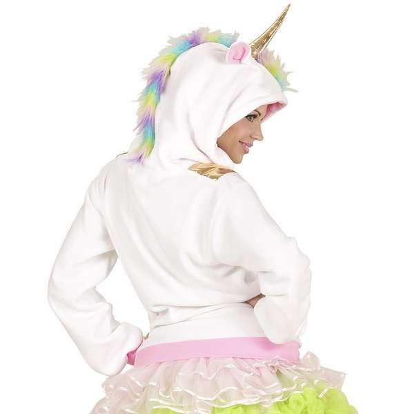 Na kapturze ozdobny róg jednorożca oraz uszy.