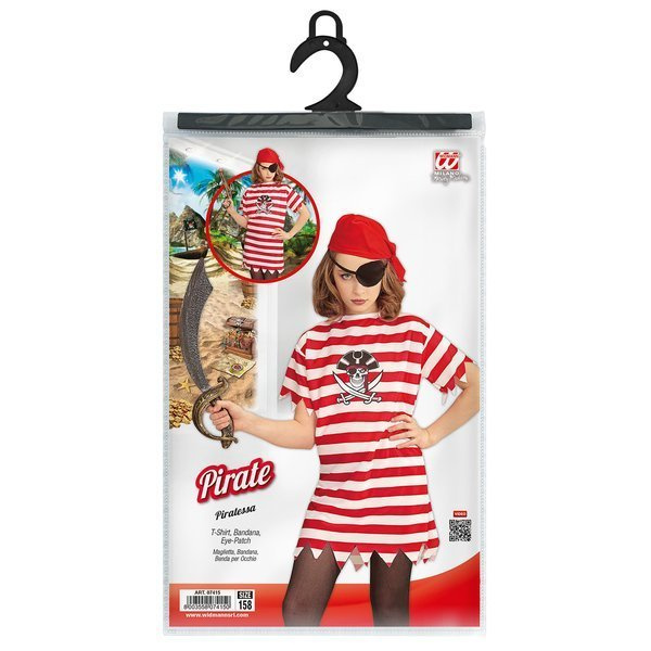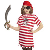 Koszulka w biało-czerwone paski z nadrukiem pirackim w kształcie czaszki oraz skrzyżowanych szabli.
