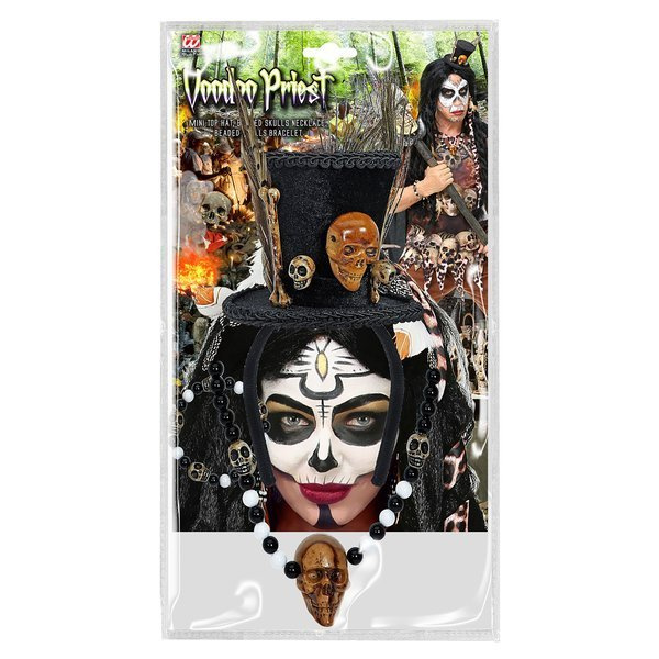W zestawie kapelusz na opasce, naszyjnik oraz bransoletka.
