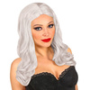 Włosy proste, zakręcone końcówki, przedziałek na środku.