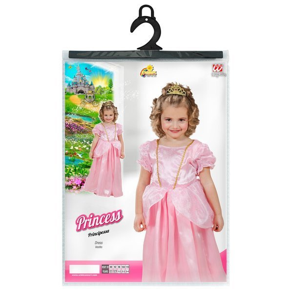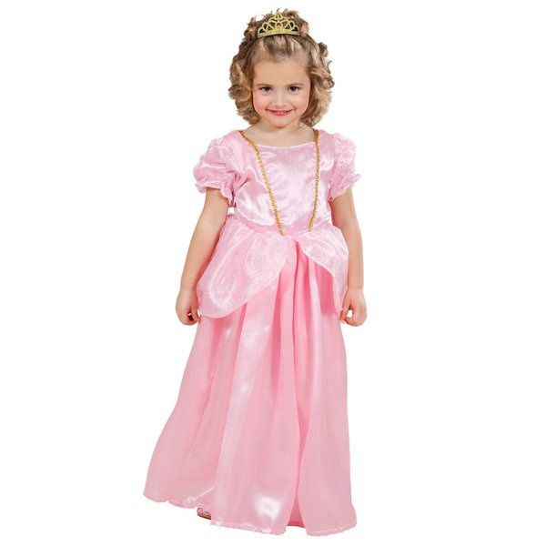 Strój Księżniczki, Księżniczka, Karnawał, kolor różowy, zestaw zawiera: sukienkę, sukienka ozdobiona materiałem imitującą satynę, przód sukienki ozdobiony złotą lamówką