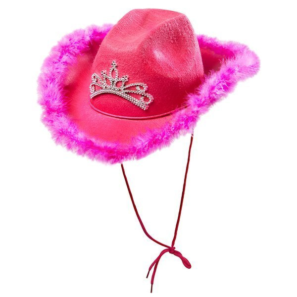 Kapelusz Kowbojki Różowy, Nakrycie Głowy, kolor różowy, kapelusz ozdobiony różowym piórkiem i koroną, wykonany z filcu