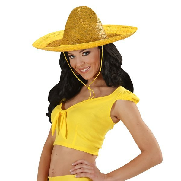 Sombrero meksykańskie w dwóch odcieniach żółci- brzegi cytrynowe, środek w kolorze ciemnej żółci .
