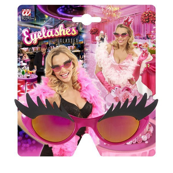 Produkt w kolorze różowym z ozdobnymi czarnymi rzęsami.