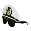 Produkt w kolorze czarnym zdobiony doczepioną białą czapką marynarza.