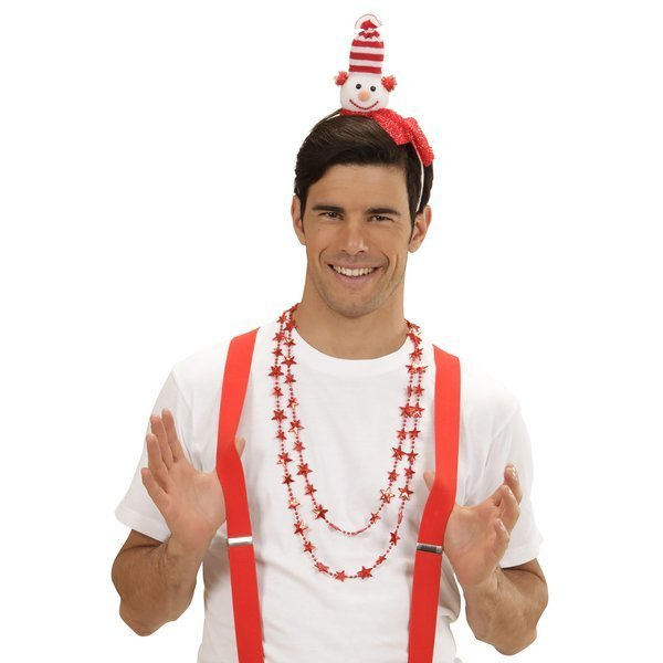 Naszyjnik w kolorze czerwonym. Zdobiony gwiazdkami. Długość ok 200 cm. Wykonany z tworzywa sztucznego.