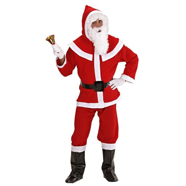 Zestaw zawiera wszystko, co potrzebne, aby wyglądać jak prawdziwy Święty Mikołaj – czerwoną kurtkę, dopasowane spodnie, kaptur, szeroki pasek, nakładki na buty, a także perukę i długą, gęstą brodę z wąsami i brwiami. Wszystkie elementy są starannie wykonane, a klasyczne połączenie czerwieni z bielą tworzy wizerunek Mikołaja rozpoznawalny na całym świecie.