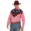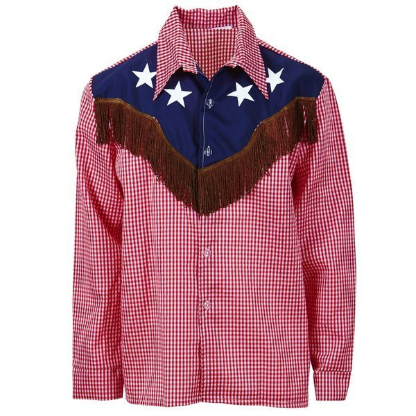 Koszula ozdobiona brązowymi frędzlami i białymi gwiazdami.