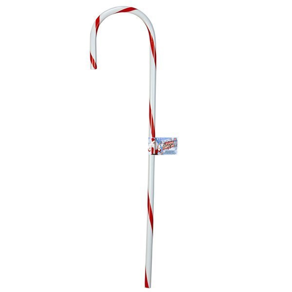 Laska koloru białego, owinięta czerwoną tasiemką klejącą.