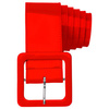 Pasek wykonany z tworzywa sztucznego w kolorze neonowym czerwonym. Posiada regulowaną długość oraz klamrę. Szerokość paska ok 5 cm. Długość ok. 120 cm.