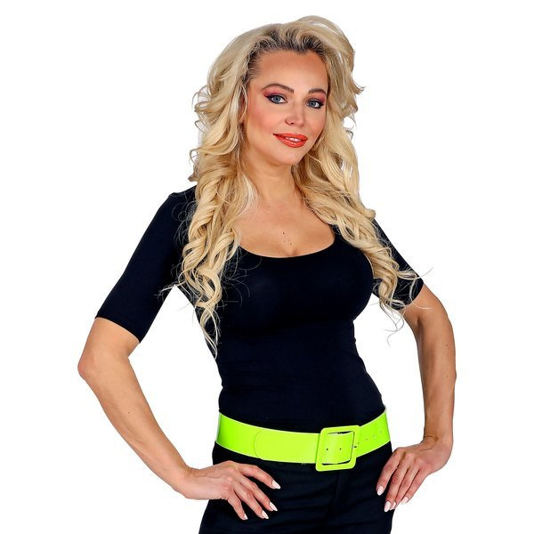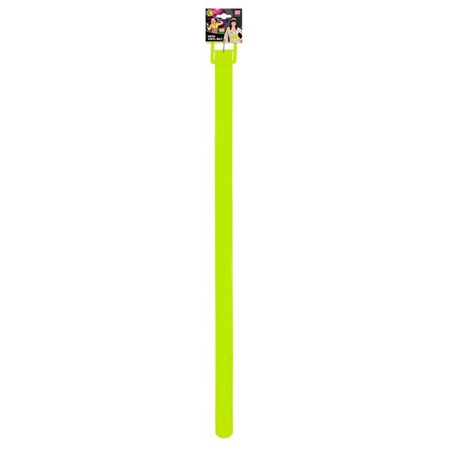 Pasek wykonany z tworzywa sztucznego w kolorze neonowym żółtym. Posiada regulowaną długość oraz klamrę. Szerokość paska ok 5 cm. Długość ok. 120 cm.