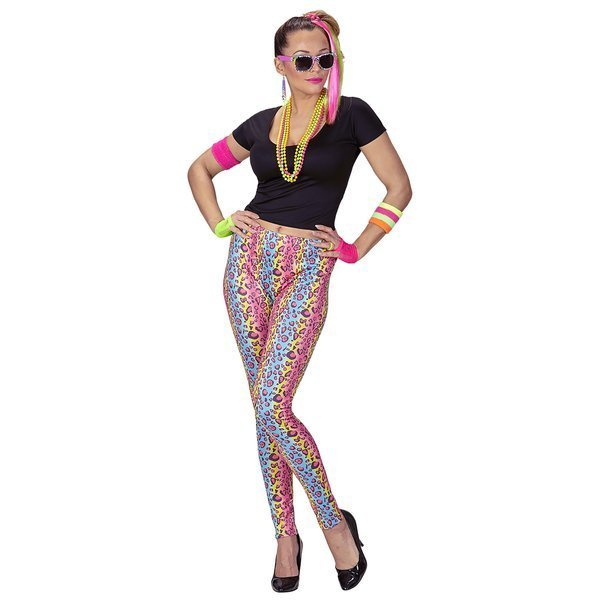 Leginsy z tęczowym wzorem panterki.