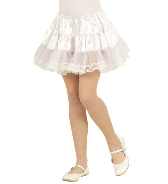 Biała halka wykonana z satyny i koronki. W pasie ma elastyczną gumkę.