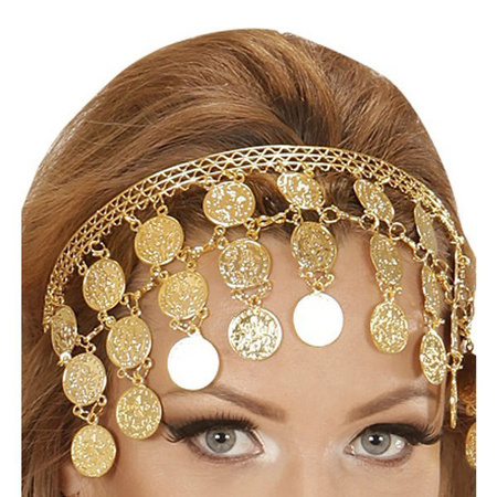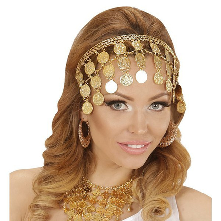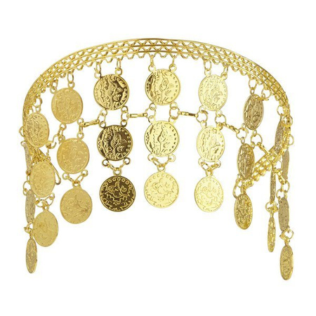 Opaska zdobiona złotymi medalikami połączonymi ze sobą.