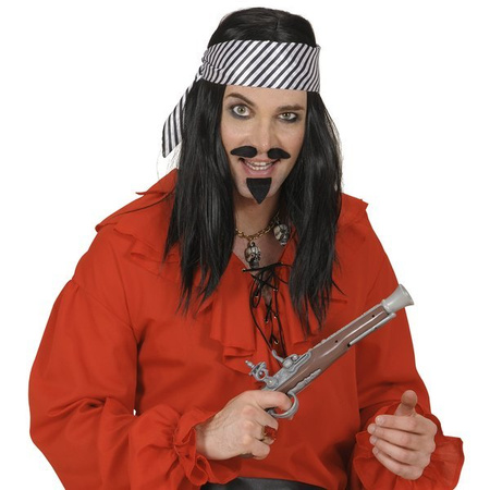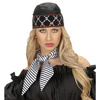 Apaszka w czarno białe paski. Wykonana z materiału imitującego satynę. Idealne uzupełnienie stroju piratki i nie tylko.