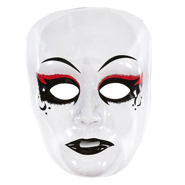 • Maska przeźroczysta z namalowanymi ustami, oczami i brwiami.