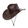 Kapelusz kowbojski ciemnobrązowy. Ozdobiony szyciem. Posiada sznurek pod szyją z regulacją.