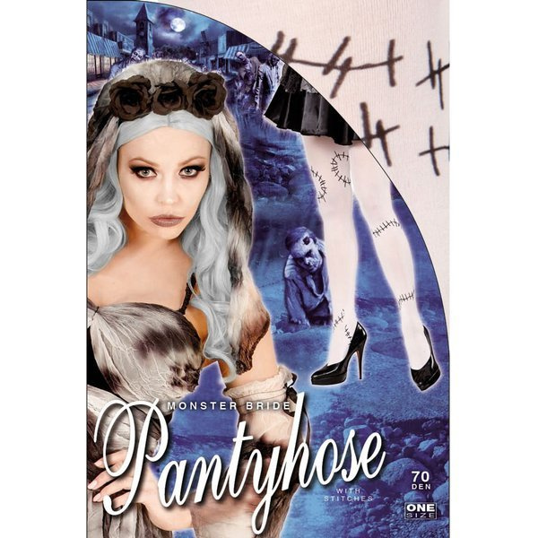 Rajstopy upiornej panny młodej. Produkt w kolorze białym zdobione czarnymi szwami. Grubość 70 den.