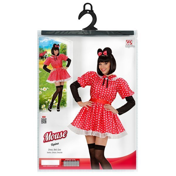 Sukienka krótka w kolorze czerwonym zdobiona białymi groszkami.
