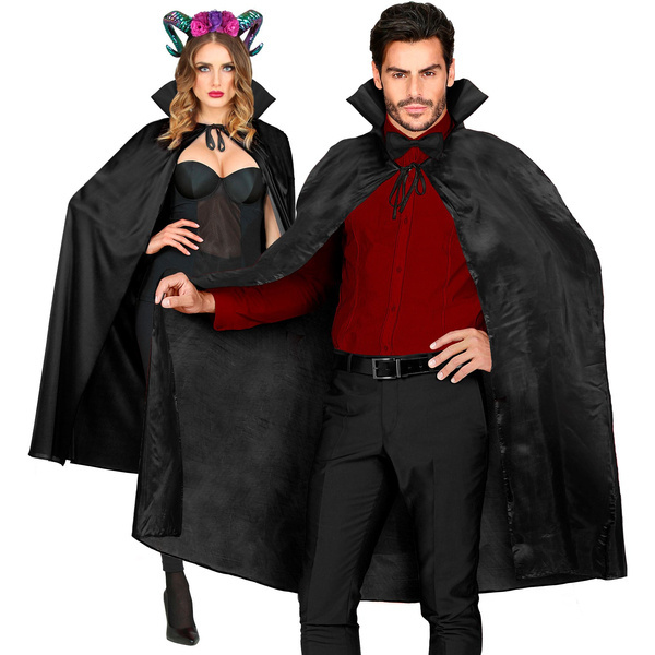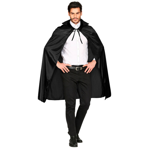 Peleryna w kolorze czarnym zdobiona kołnierzem. Wiązana pod szyją. Długość ok 120 cm.