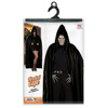 Peleryna czarna z kapturem, zawiązywana pod szyją.
