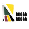 Opakowanie zawiera farbki, gąbeczkę i sztuczne paznokcie w kolorze czarnym.