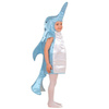 Za plecami oraz na wysokości ud znajdują się płetwy. Na głowie rybka ma oczy i długi dziób.
