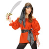 Czerwona koszula z marszczonym dekoltem i rękawami.