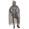 Peleryna przeźroczysta ozdobiona srebrnymi pajęczynami, postrzępiona, z kapturem.