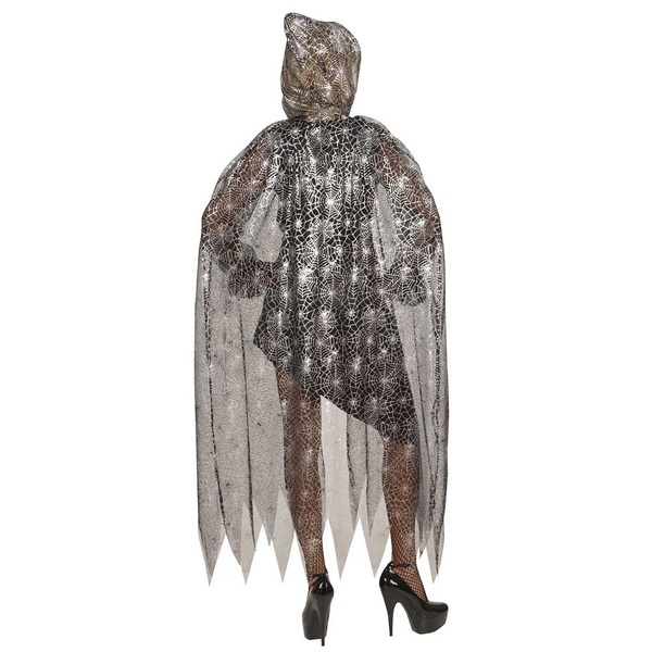 • Peleryna przeźroczysta ozdobiona srebrnymi pajęczynami, postrzępiona, z kapturem.