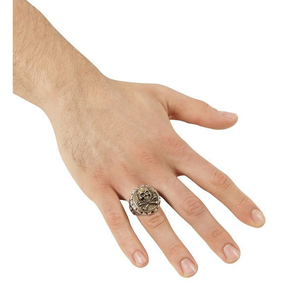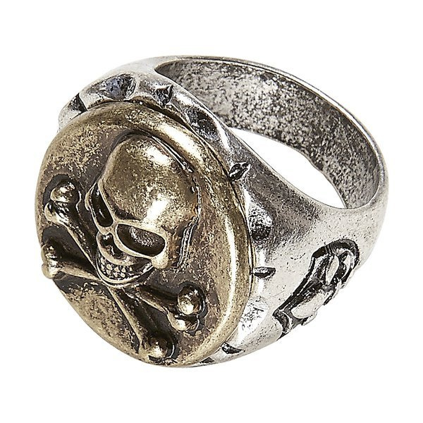 • Pierścionek pirata z ozdobną czaszką w kolorze postarzanego srebra.