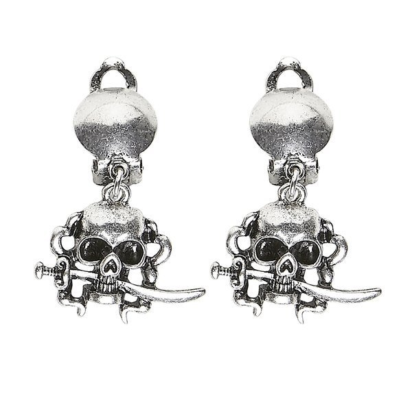 Kolczyki w kształcie czaszek w pirackim stylu.