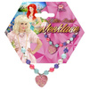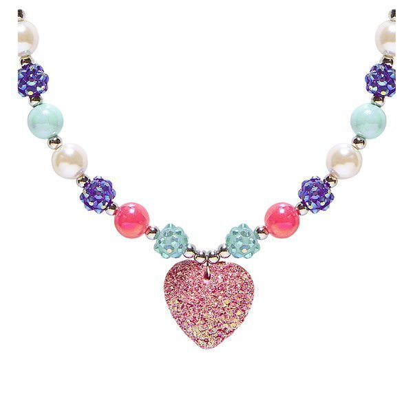 Posiada zawieszkę w kształcie serca pokrytą brokatem.