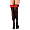 Pończochy w kolorze czarnym z czerwonymi wstążkami.