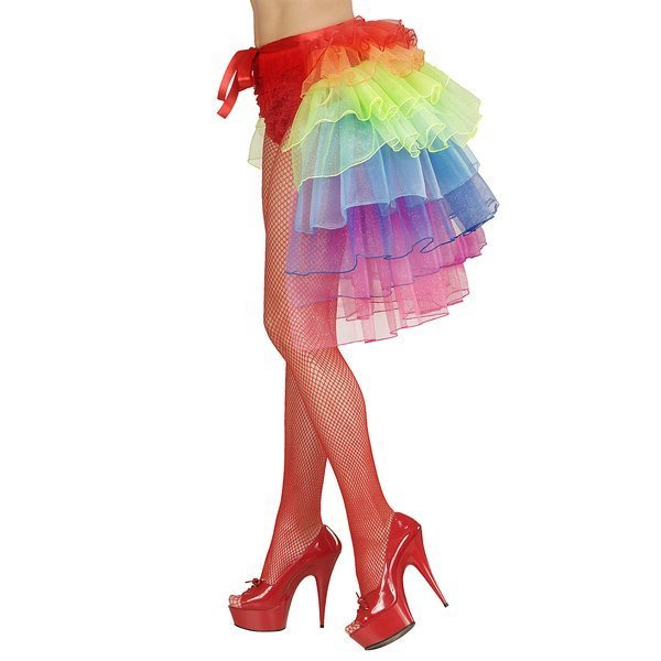 Spódnica tancerki warstwowa w tęczowych kolorach.