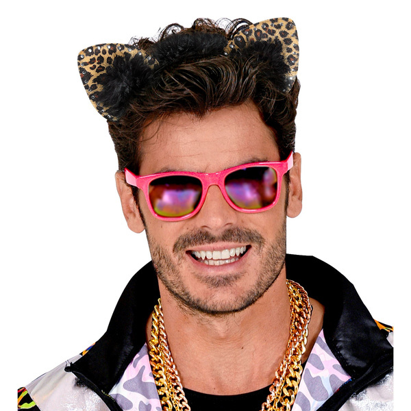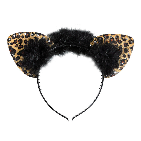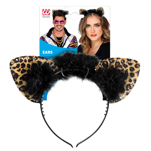 Opaska na głowę z uszami w cętki. Zdobiona futerkiem i srebrnymi kamyczkami. Kolor: beżowo-brązowo-czarny.