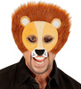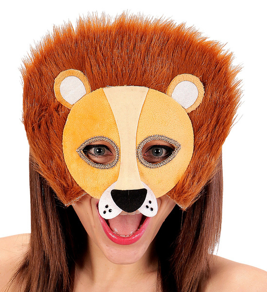 Maska w odcienaich koloru brązowego. W masce wycięte są otwory na oczy.\ Mocowana na gumce. Maska wykonana z futerka i pluszu.