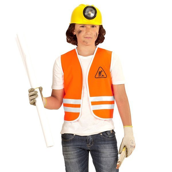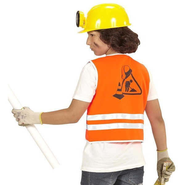Kamizelką dziecięca budowlańca.